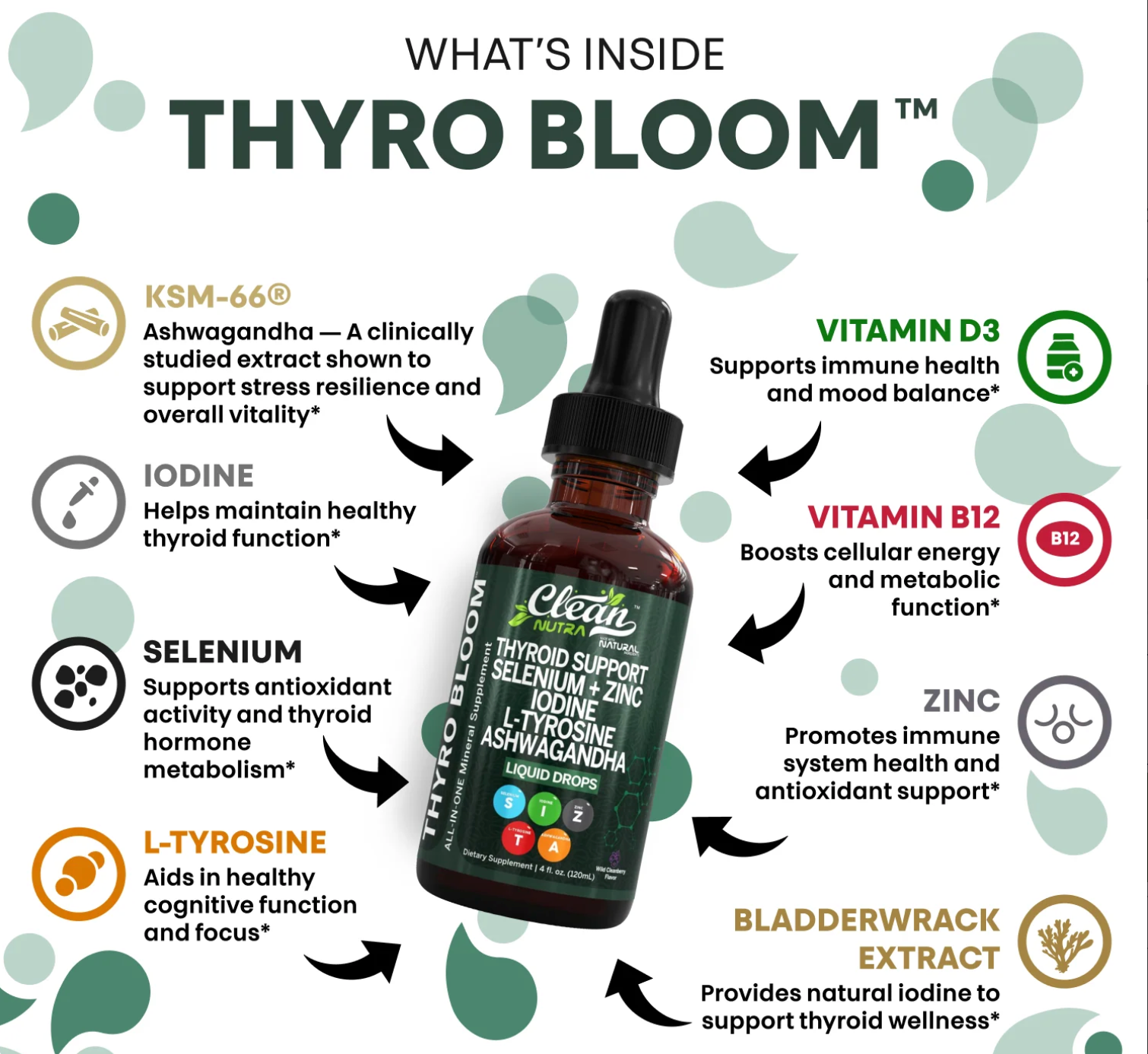 Supports healthy thyroid hormone production to boost metabolism, energy, and overall vitality.